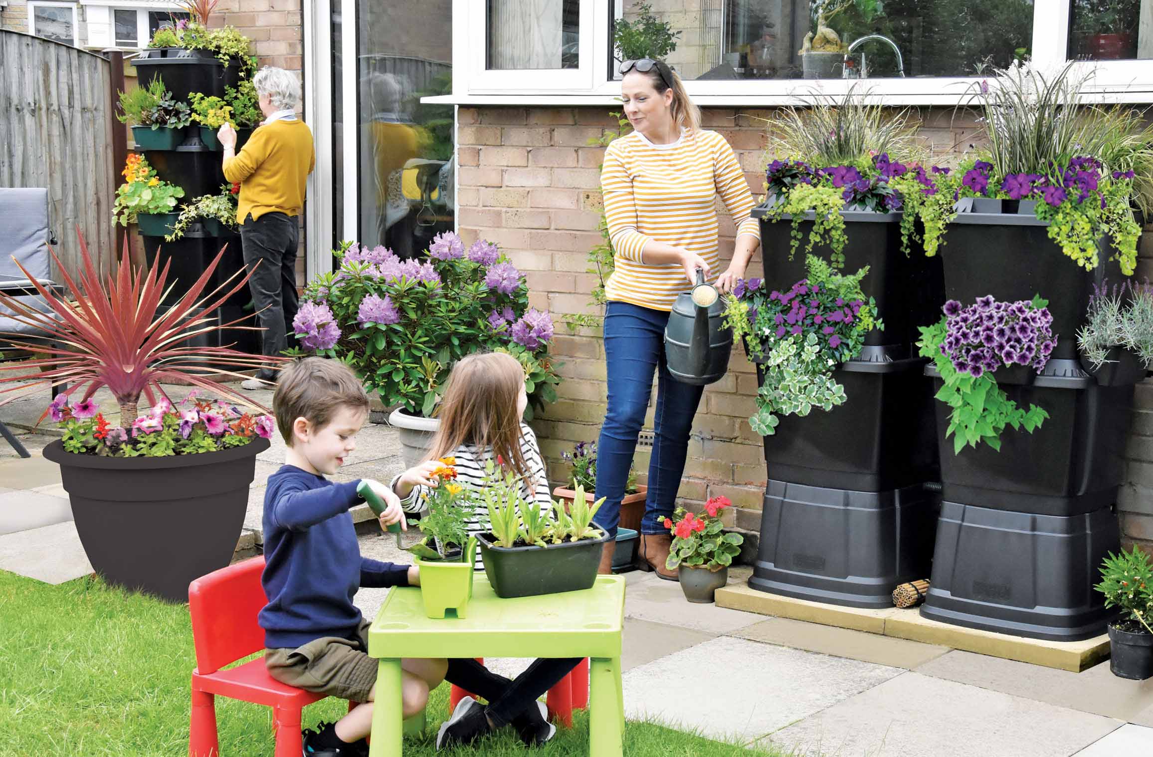 - Rainwater Terrace water butts can be planted with flowers and plants that capture CO2 and are great for helping local wildlife such as bees.
